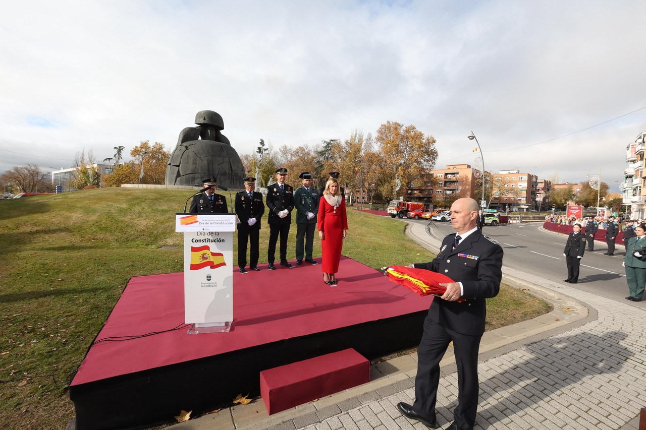 El acto, que contó con representantes de la Policía Nacional, la Guardia Civil, el Cuerpo de Bomberos y Protección Civil, comenzó con el tradicional izado de la Bandera de España al son del Himno Nacional interpretado por la Banda Municipal de Música de Alcobendas, que también interpretó varias piezas musicales de carácter militar.