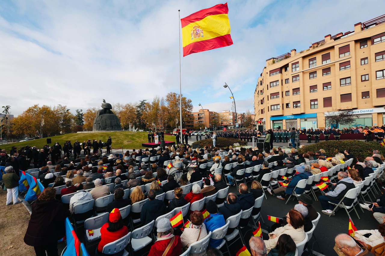 La Glorieta de La Menina de Alcobendas ha sido escenario esta mañana de un solemne acto cargado de simbolismo para celebrar el Día de la Constitución española, al que han asistido centenares de vecinos.