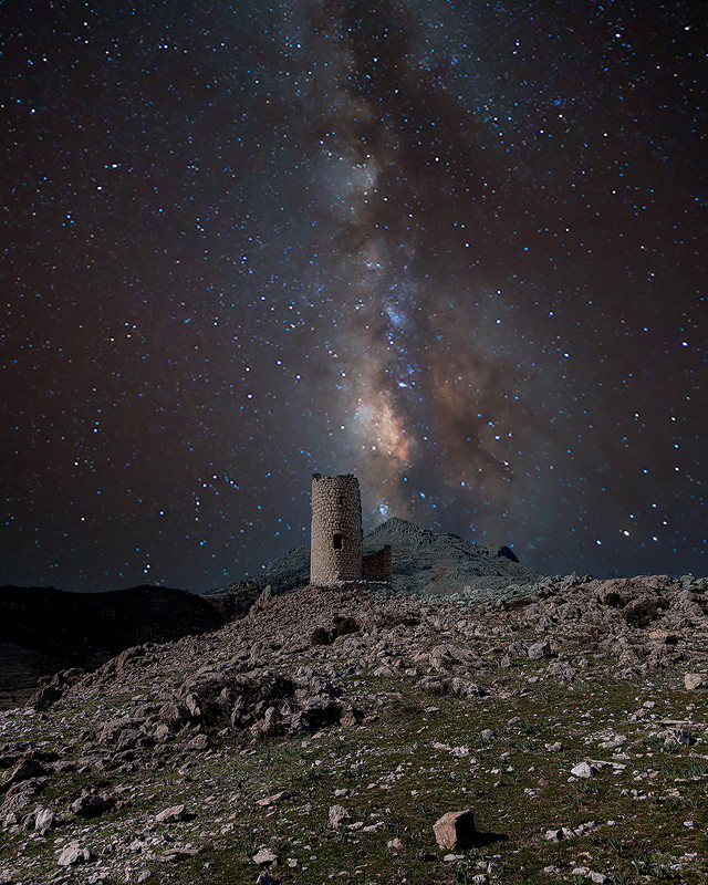 Y el tercer premio para Julián Campillo, con la fotografía ‘Vía láctea y torre del Lucero’, en Bélmez de la Moraleda (Jaén):.